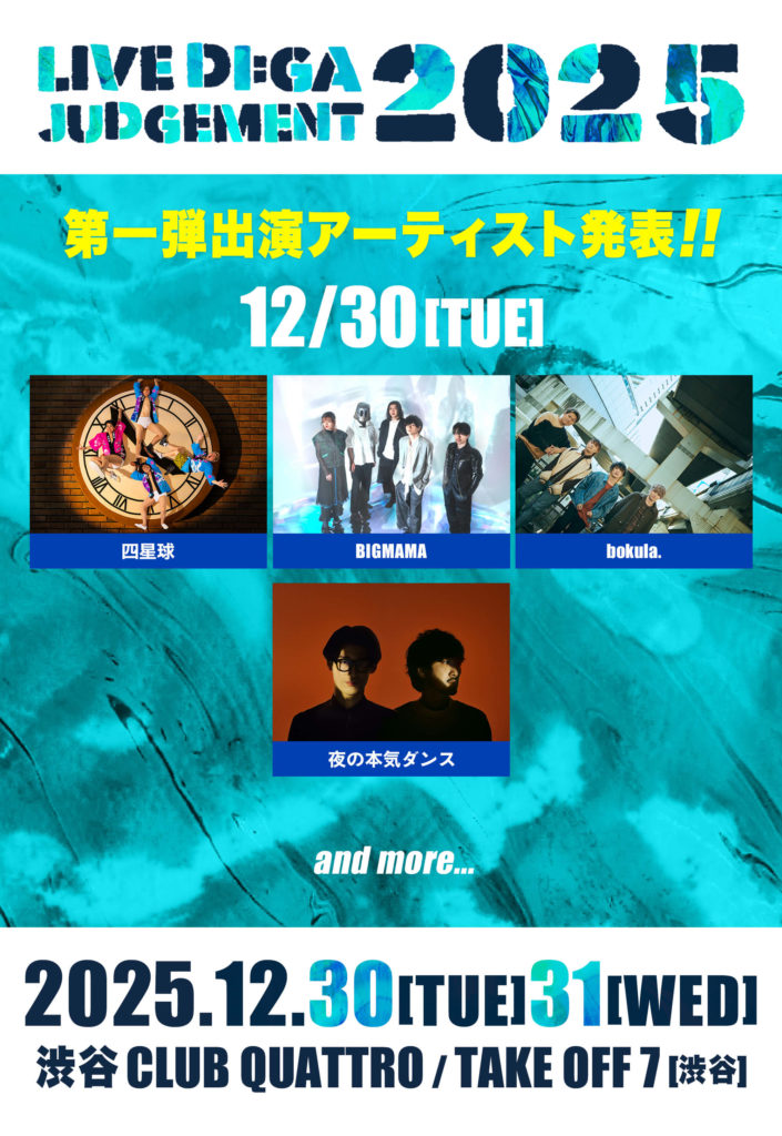 2025年12月30日(火)/31日(水)渋谷CLUB QUATTRO/TAKE OFF 7 にて開催の「LIVE DI:GA JUDGEMENT 2025」へ…