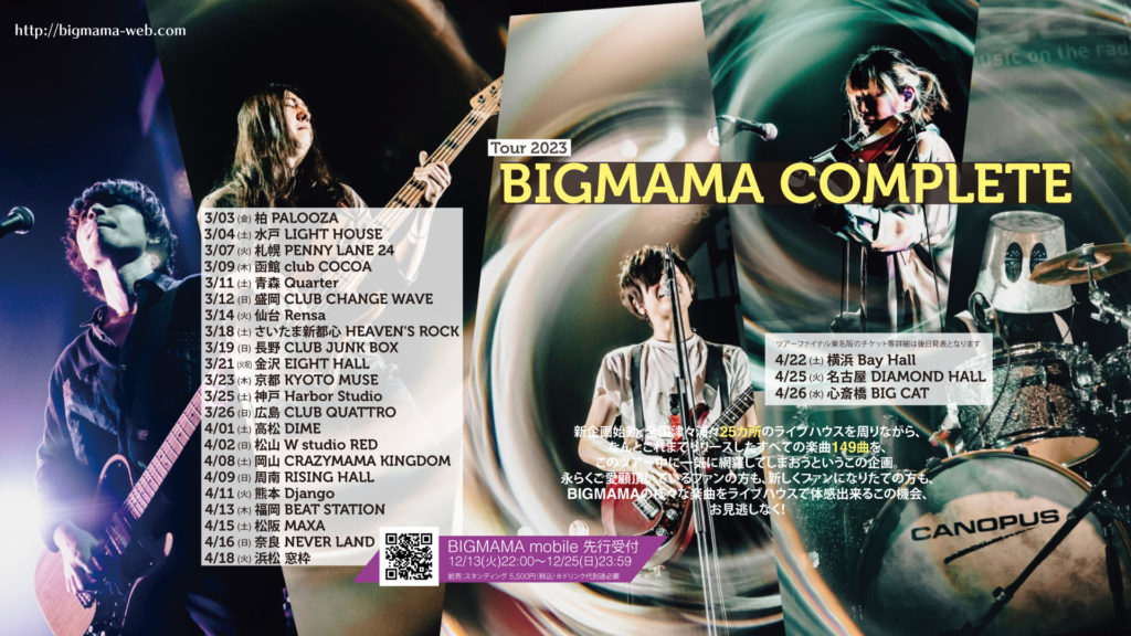 2023年3月より始まるツアー「BIGMAMA COMPLETE」の公演詳細・およびチケット先行の受付が開始となりました。 BIGMAMA COMPLETE 全…