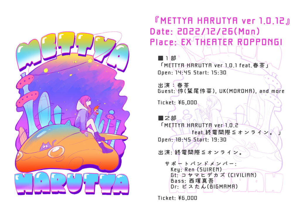 12/26(月) EX THERTER ROPPONGI にて開催の「METTYA HARUTYA ver 1.0.12」春茶/終電間際≦オンライン。 のサポー…