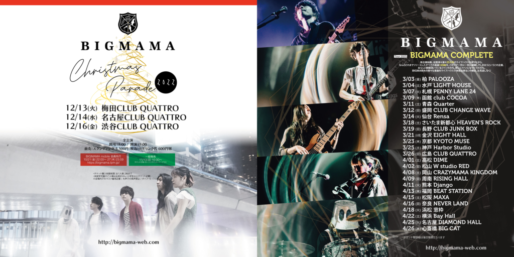 BIGMAMA の挑戦は次のステージへ。 毎年恒例のクリスマスイベント「Christmas Parade 2022」に加えて、さらなる新企画、全国25カ所を巡る「BIGMAMA COMPLETE 」開催決定!