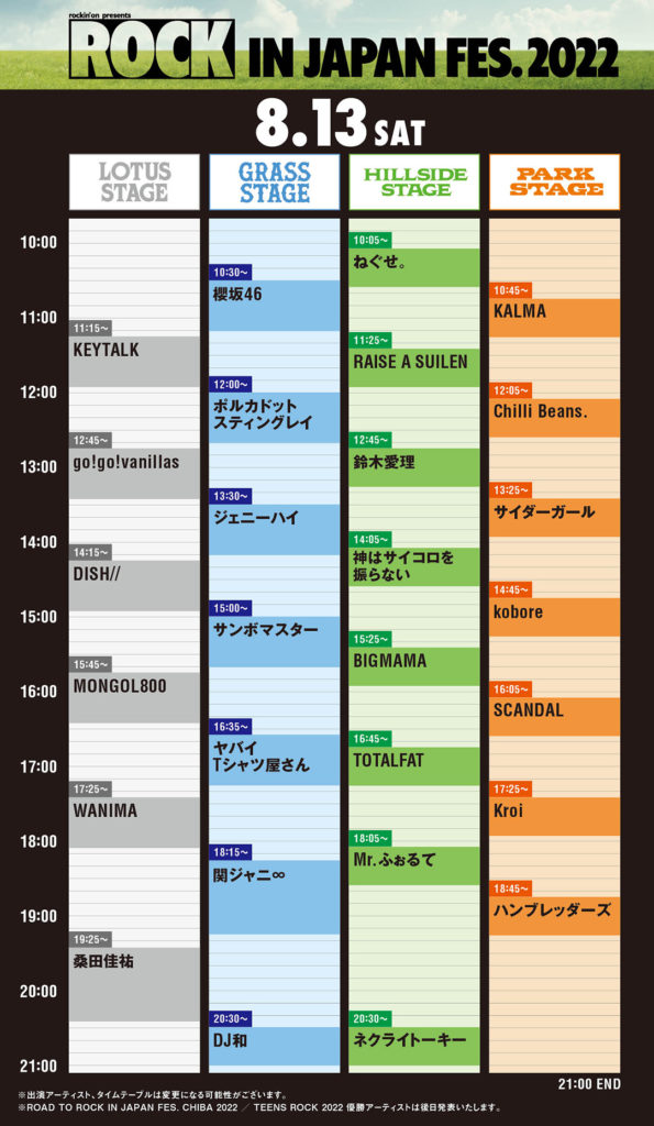 ROCK IN JAPAN FESTIVAL 2022 タイムテーブルが発表