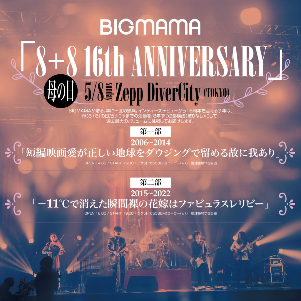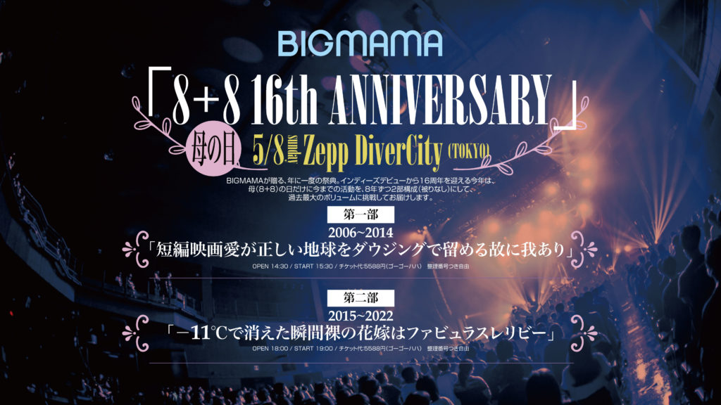 5月8日(日) <母の日> Zepp DiverCity (TOKYO) 「8+8 16th ANIVERSARY」 第一部 2006~2014「短編映画愛が正…