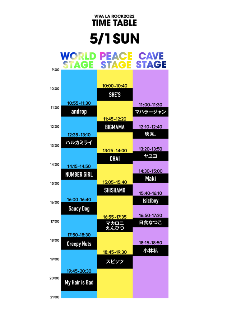4月30日(土)、5月1日(日)、3日(火祝)、4日(水祝) さいたまスーパーアリーナにて開催の「VIVA LA ROCK 2022」 タイムテーブルが発表とな…