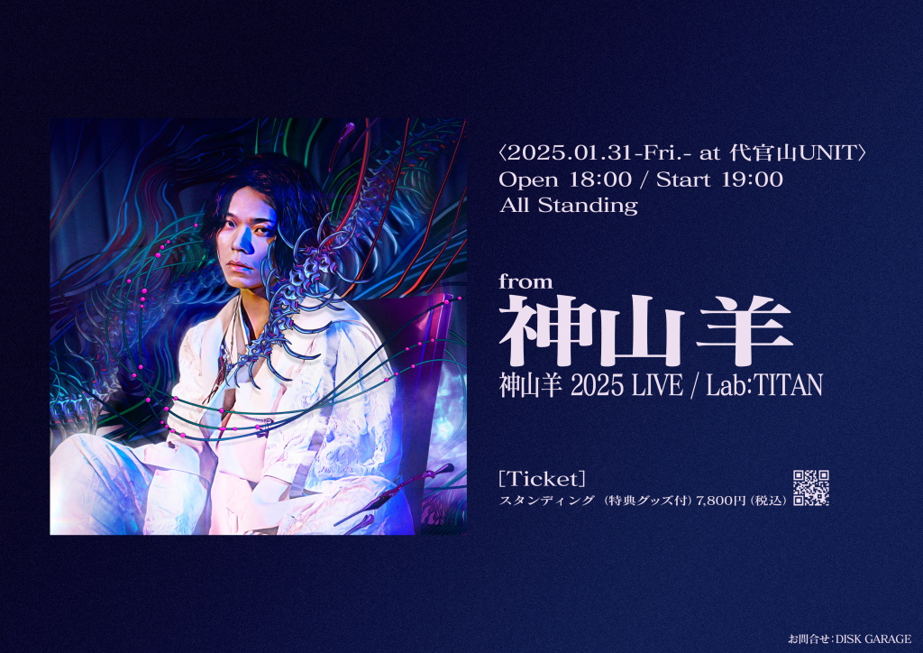 来週、1/31(金) 代官山UNITにて開催の『神山羊 2025 LIVE / Lab:TITAN』柿沼広也がサポートギタリストとして出演します 『神山羊 20…
