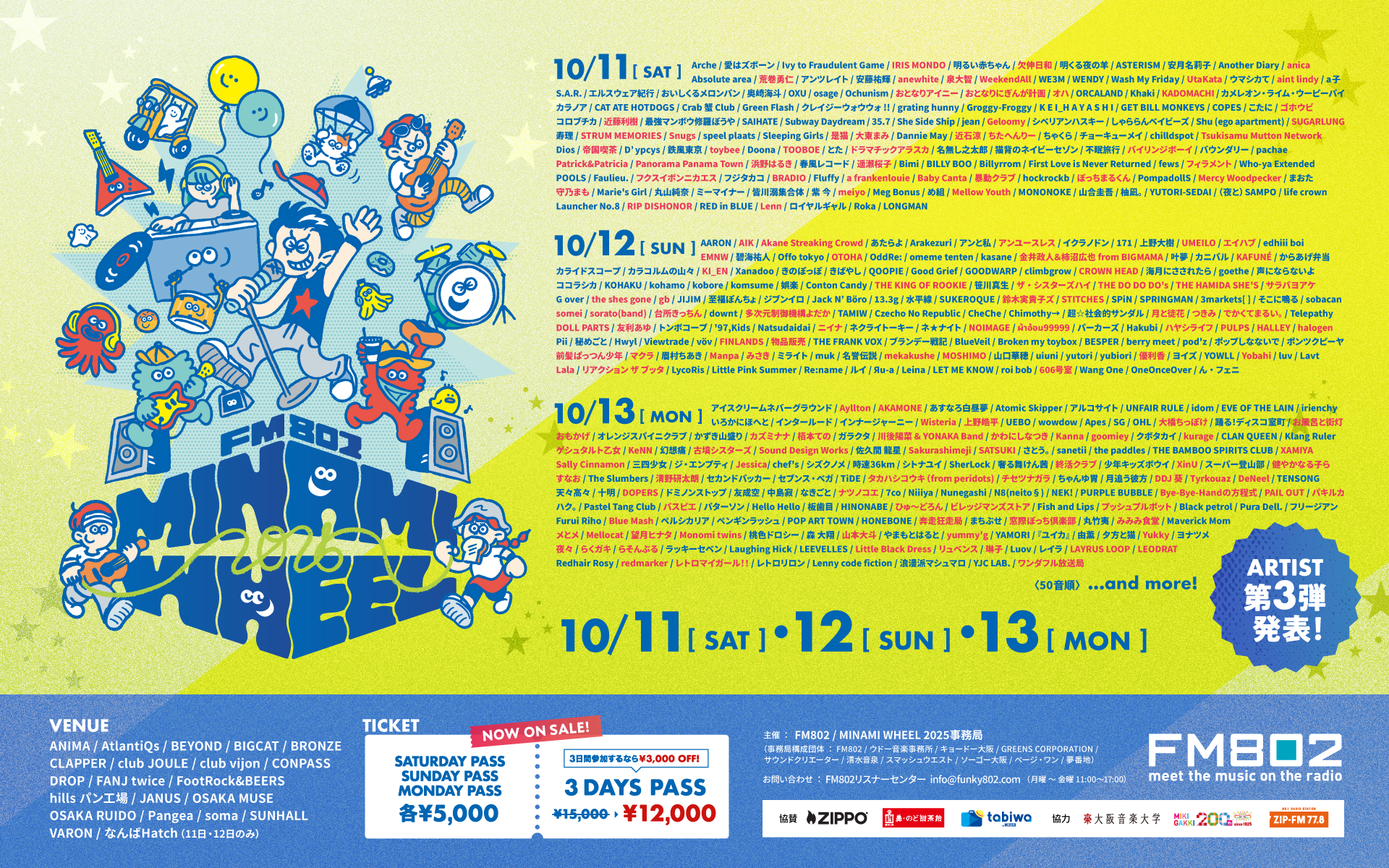 10月11日(土)、12日(日)、13日(月・祝) に大阪・ミナミ21会場で開催されるショーケースフェス「FM802 MINAMI WHEEL 2025」